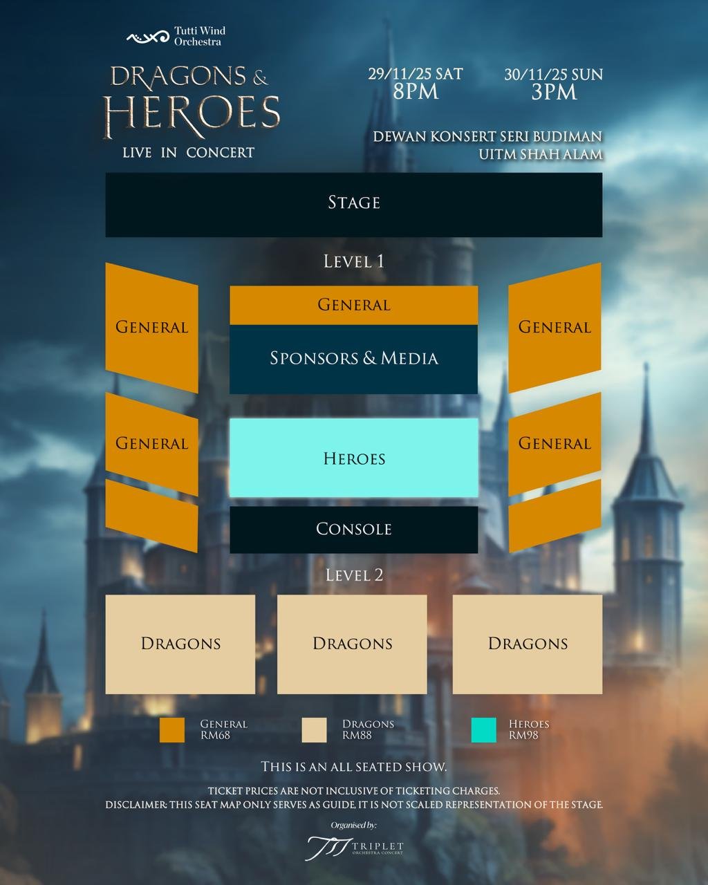 From thunderous percussion to sweeping brass, every theme gallops across the hall like a battle standard in the wind. Join us at Dewan Konsert Seri Budiman, UiTM Shah Alam for a concert that roars, whispers, and ultimately soars. Get your tickets now!